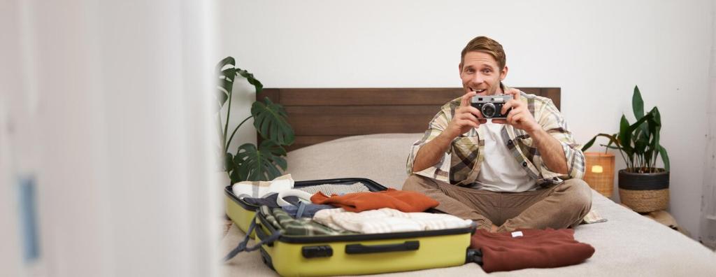 Ein glatter Stein, ein Foto, ein vertrauter Duft: Taktile oder olfaktorische Anker signalisieren deinem Nervensystem Sicherheit. Verknüpfe den Gegenstand mit einer kurzen Atemsequenz. Jedes Mal, wenn du ihn berührst, erinnert sich dein Körper an Ruhe. Poste gern deinen persönlichen Reise-Talisman und seine Geschichte.